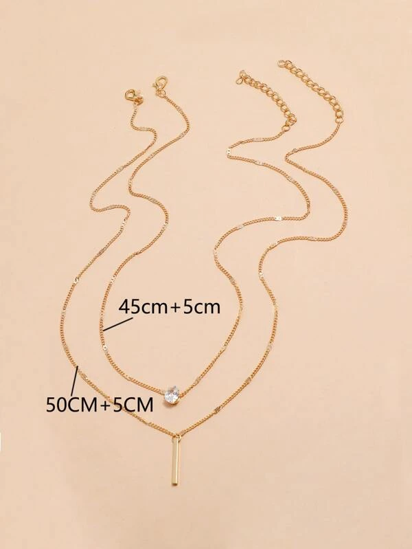 2 peças/conjunto colar strass pingo d’água & retângulo
