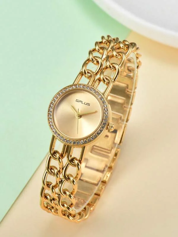 Relógio De Quartzo Dourado Com Decoração De Strass